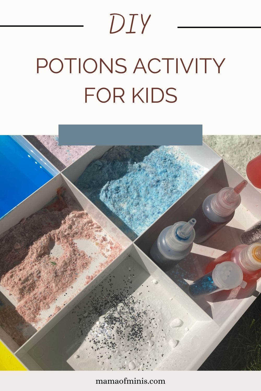 This DIY Potions Activity is the perfect activity to keep kids busy on a warm day. Great for kids of all ages and is a fun STEM or sensory activity as well.
